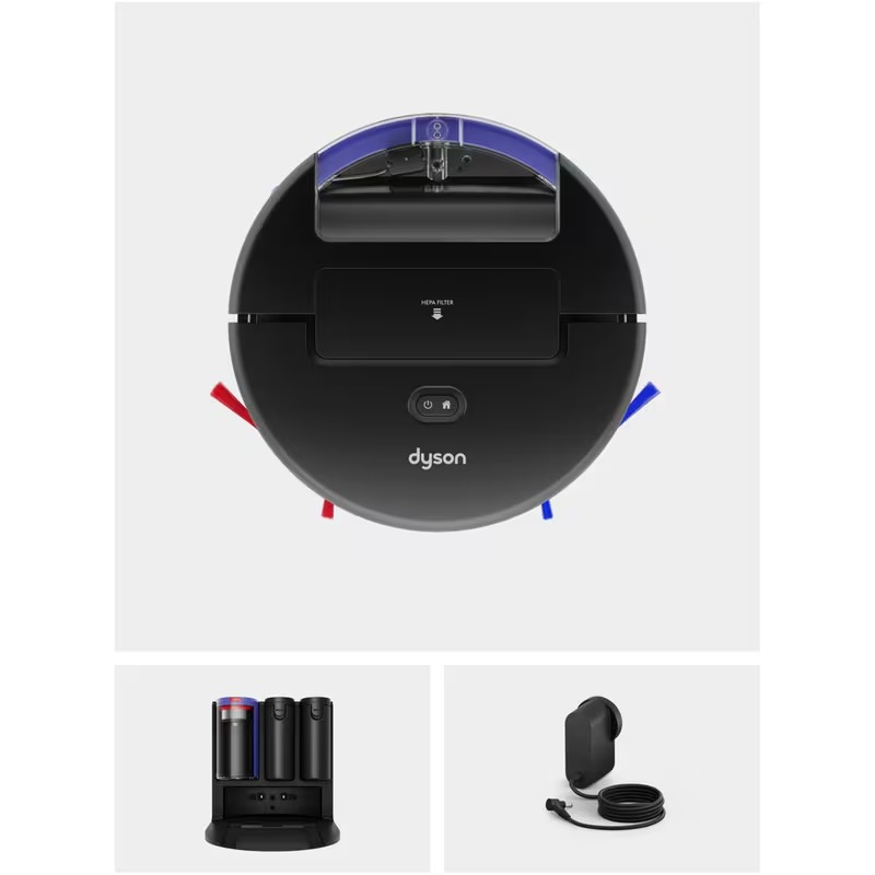 • Η συσκευασία περιλαμβάνει: Dyson Spot+Scrub™ Ai Σκούπα Ρομπότ Υγρού και Στεγνού Καθαρισμού, Σταθμός σύνδεσης, Φορτιστής
