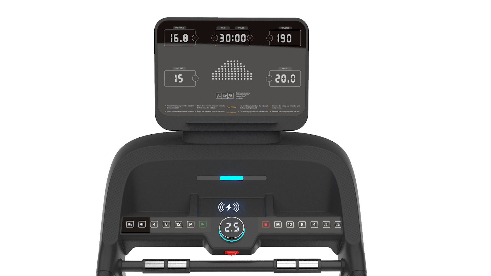 Απολαύστε την άνεση της ασύρματης φόρτισης συμβατών συσκευών και μια βάση tablet για ψυχαγωγία κατά τη διάρκεια των προπονήσεών σας.