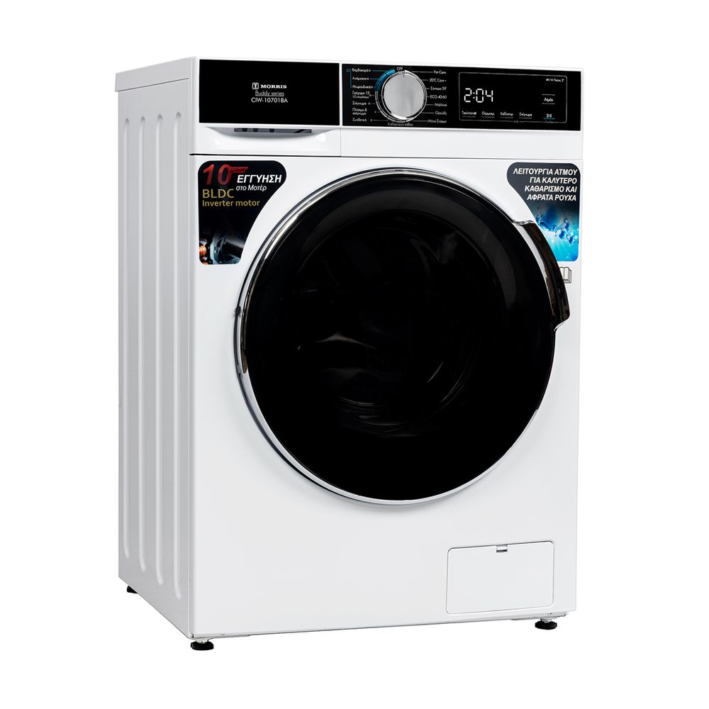 Πλυντήριο-στεγνωτήριο ρούχων με χωρητικότητα 10 κιλά για την πλύση και 7 κιλά για το στέγνωμα. Με δυνατότητα επιλογής στροφών και θερμοκρασίας ανά πρόγραμμα και μοτέρ BLDC Inverter προηγμένης τεχνολογίας, που βοηθάει στην μείωση της κατανάλωσης και του θορύβου.