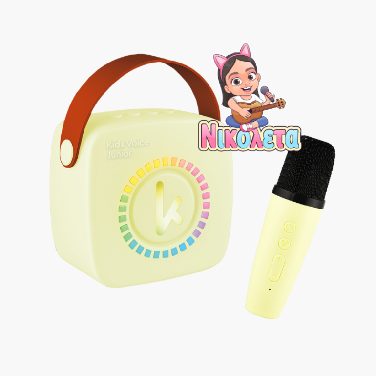 Ανακάλυψε το Kiddoboo mini Karaoke Speaker & Mic Blue + NikoletaTV, ιδανικό για μουσική, τραγούδι και karaoke σε μία συσκευή! Με ασύρματη εμβέλεια 10m και Bluetooth v5.3, προσφέρει άνεση και ευκολία. Κατάλληλο για παιδιά ηλικίας 3+, διαθέτει μπαταρία 1200mAh, ισχύ 5W και συχνότητα 120Hz-20KHz. Δώρο: Κάρτα SD με τραγούδια Nikoleta TV.